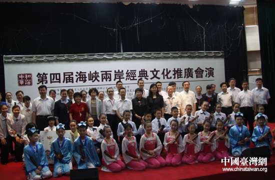 嘉宾与学生合影留念。(中国台湾网 朱炼 摄)
