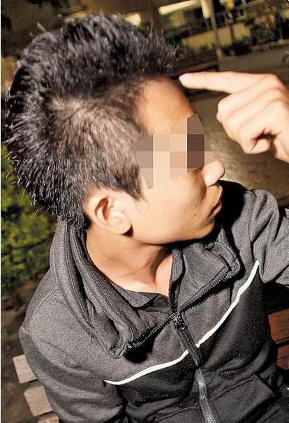 徐姓少年指着头说遭警殴打,还被逼吃狗屎。(图片来自台媒)