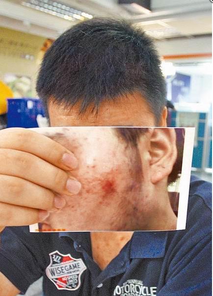 马姓少年拿脸被打肿照片,指控3恶警施暴。(图片来自台媒) 第1页第2页第3页第4页