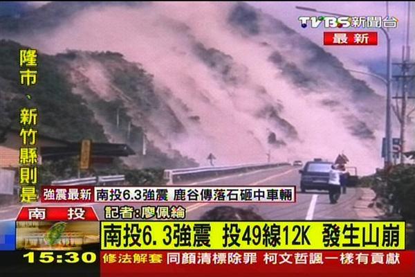 台湾南投县6.7级地震引发山崩,上百人受困。(图片来源:台湾TVBS)