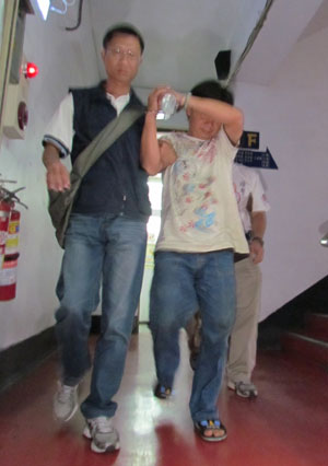 高雄市警方昨天将疑似利用毙死猪制成黑心食品的侯姓主嫌(右),被依违反废弃物清理法、食品卫生管理法移送高雄地检署。(图片来自台媒)