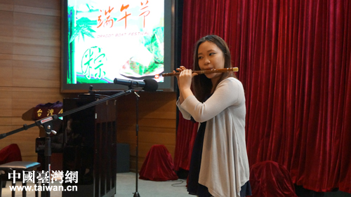 中央音乐学院台生廖欣恩笛子独奏《小开门》。(北京市台联 许俊章 摄)
