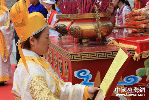 礼生宣读祝文。(中国台湾网 樊玉娇 摄)