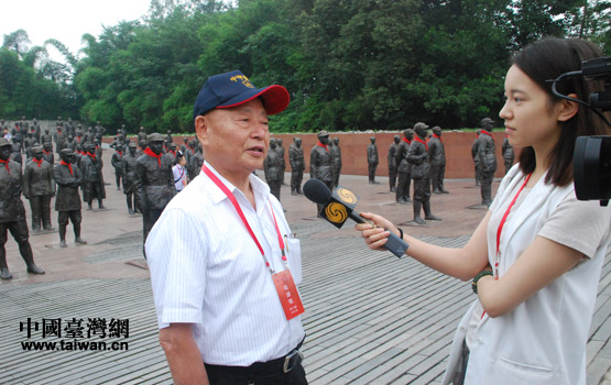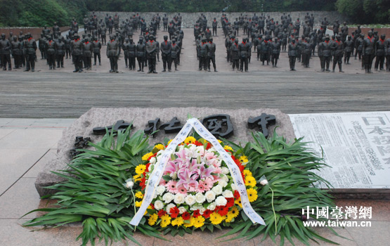 6月17日上午,在中国壮士群雕广场,两岸的黄埔亲属、黄埔代表一起,为抗战英烈雕像敬献了花环。(中国台湾网 李丹 摄)