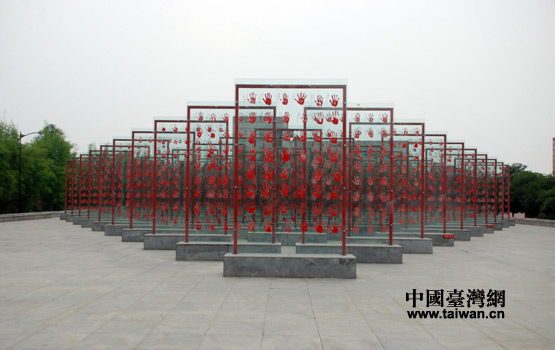 抗战老兵手印广场,手印碑林呈胜利的“V”字型。重重叠叠的手印,形成排山倒海之势,这就是民族力量的真切体现。(中国台湾网 李丹 摄)