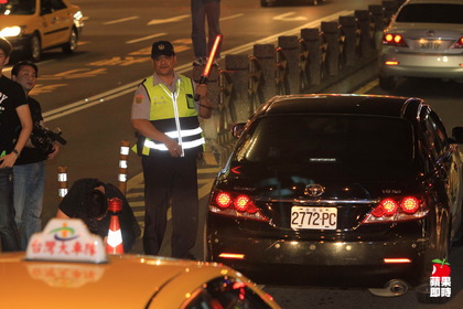 台北市警方在忠孝西路前执行酒测勤务,将车辆拦下一一查看。(图片来自台媒)