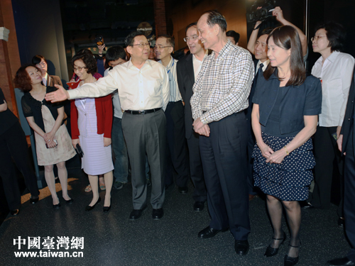 20日下午,海协会会长陈德铭夫妇与海基会董事长林中森夫妇一起在沪参观了上海电影博物馆与东方明珠。他们在参观中尝试电影配音、体验摄影棚录像,并详细了解了上海的历史发展。(中国台湾网 王伟 摄)