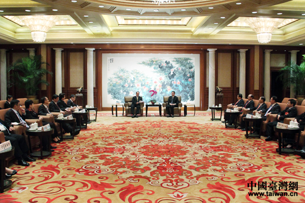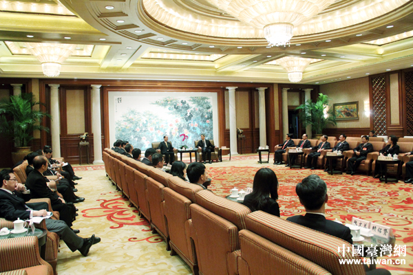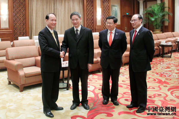 中共中央台办、国务院台办主任张志军21日在上海会见了台湾海基会董事长林中森一行。海协会会长陈德铭等参加会见。(中国台湾网 于斯文 摄)
