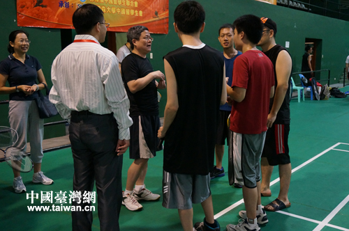 中国台湾网6月25日马尼拉消息 前天,由菲律宾中华青年联合会、菲律宾中国留学生联合会主办、菲律宾亚当森大学中国留学生会承办的“首届海峡两岸旅菲留学生羽毛球友谊赛”在菲律宾国家体育馆举行。来自菲律宾10余所高校的两岸旅菲留学生共130多名出席并参加比赛活动。中国驻菲律宾大使馆文化参赞潘峰亲临现场指导宣布比赛正式开始并挥拍开球。