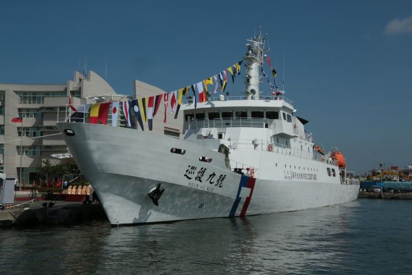 台当局“海巡署”新建的1000吨级巡护船“巡护九号”今天成军(图片来自台湾“中广新闻网”)