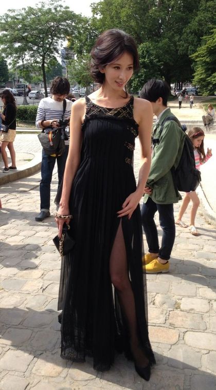 中国台湾网7月2日消息 据台湾媒体报道,林志玲现身2013巴黎高级订制服秀的CHANEL(香奈儿)秀场,她穿一袭黑色礼服展现优雅气质,但也不负“台湾第一名模”称号,一撩纱裙裙侧的高衩,就露出修长美腿相当抢镜。