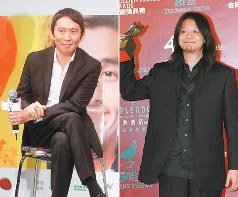 台湾导演钮承泽(左)为新电影《军中乐园》赴海军左营军港勘景,让大陆摄影师曹郁(右)登上军舰,台军方将对剧组涉案人员提告。图片来源:台湾《联合报》