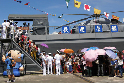 台海军开放民众进入营区登舰参观。(图片来自台媒)