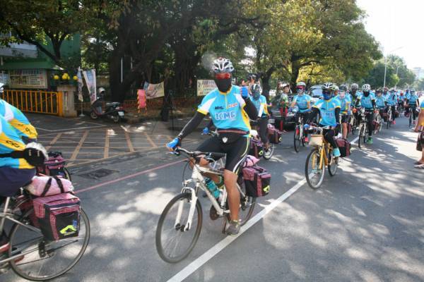 第7届百人自行车环岛活动,今天上午,从台湾体育运动大学田径场出发,展开为期15天1000公里的自行车环岛旅程。(图片来自台湾“中广新闻网”)