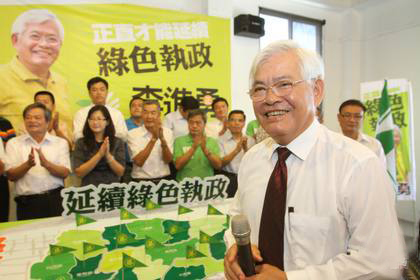 李进勇手持延续绿色执政标语,宣布竞选云林县长。(图片来自台媒)