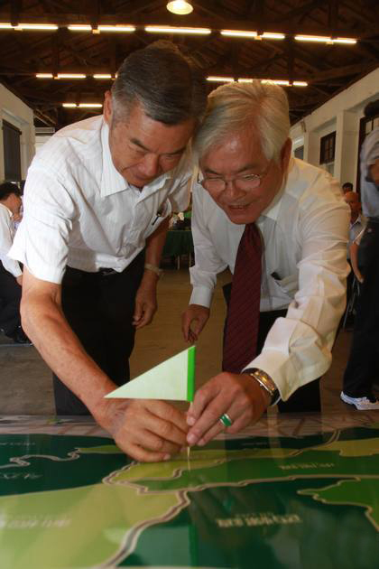 李进勇插小绿旗在云林县各乡镇地图上。(图片来自台媒)