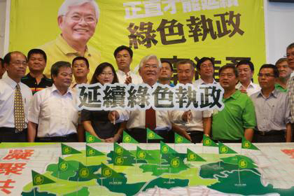 中国台湾网7月8日消息 据台湾媒体报道,台当局前“法务部政务次长”、基隆市前市长李进勇今天(8日)上午召开记者会,率领20乡镇竞选团队,宣布竞选下届(2014)云林县长,民进党云林县执政的乡镇长出席站台相挺。李进勇说,让我们凝聚共识、整体布局,打一场“延续绿色执政,拒绝家族垄断”的团队作战。