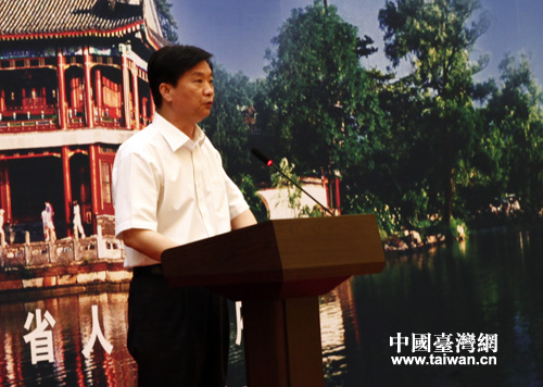 河北省人民政府副省长杨汭在开幕式上致辞。(中国台湾网记者 高斯斯 摄)