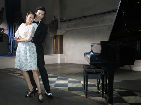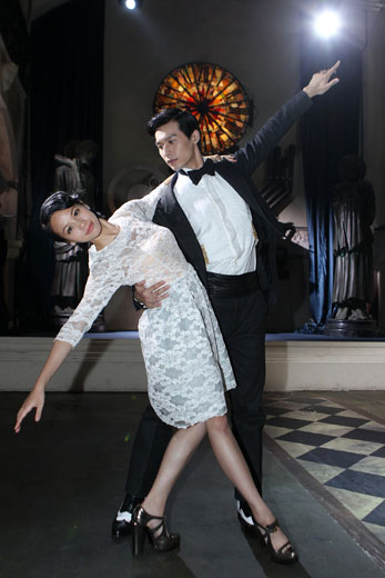 严爵(右)拍摄前一天特地练跳华尔兹。(图片来自台媒)