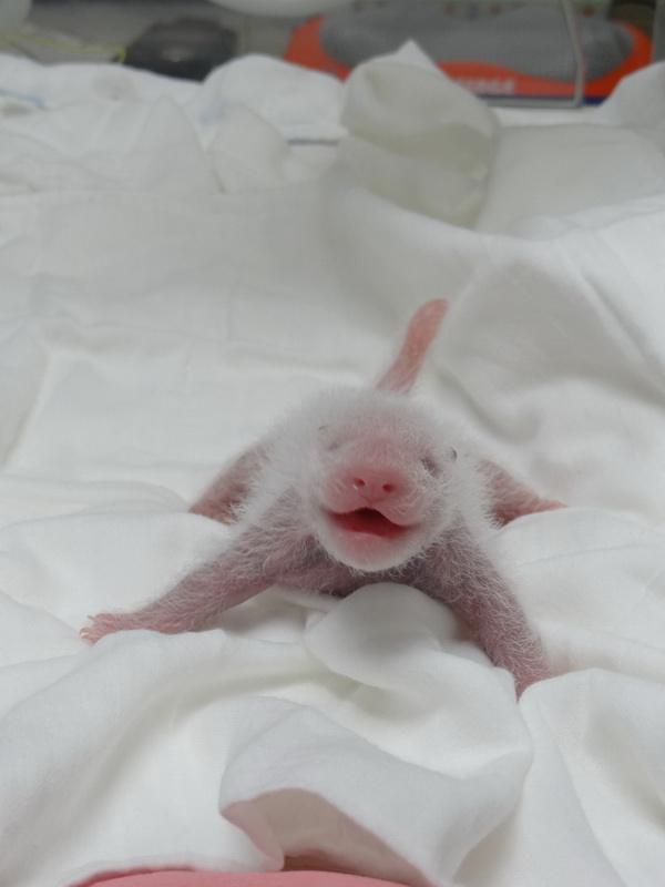 中国台湾网7月12日消息 据台湾“中广新闻网”报道,台北市立动物园大熊猫宝宝“圆仔”,尽管眼睛还没有张开,不过最近动物园拍下了宝宝“圆仔”展露笑颜的照片,模样可爱极了,好像是在跟妈妈说:“肚子饿了,要喝奶。”