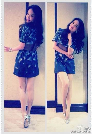 这天舒淇压轴出场,一身蓝色花卉图案、两截式的小洋装,只用半透明的薄纱连结,露出大片小蛮腰,性感破表,成为全场焦点。她脚上还踩着镶满透明宝石的高跟鞋,相当抢眼,一到场就摆出多种俏皮姿势,任摄影师拍摄。