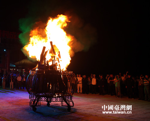 部分台湾嘉宾为篝火晚会点燃火源。(中国台湾网 高斯斯 摄)