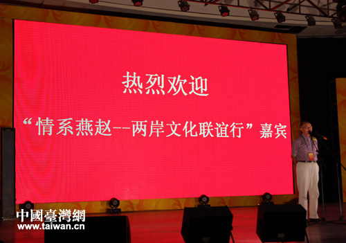 前台湾政治大学教授、本届情系活动台湾团的荣誉团长程建人在晚间的欢迎晚宴上发表讲话。(中国台湾网 高斯斯 摄)