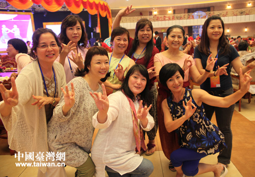 台湾女嘉宾在欢迎晚宴上合影留念。(中国台湾网 高斯斯 摄)