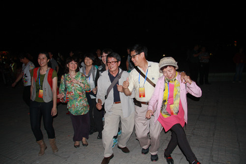 在篝火晚会上,台湾嘉宾们欢快地跳起了舞(中国台湾网 芜同 摄)