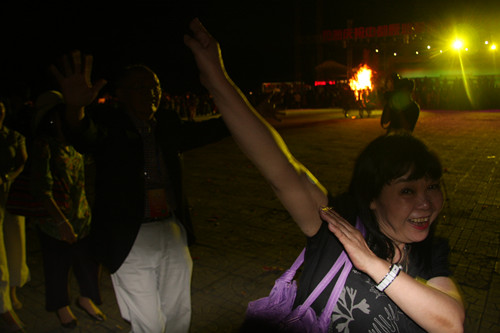 台湾嘉宾在篝火晚会上尽情的舞着(中国台湾网 芜同 摄)