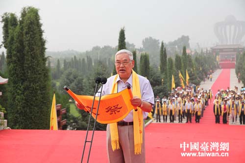 曾子后代、台湾世新大学讲座教授曾永义特为本次祭祖撰写了祭文并恭读。(中国台湾网 高斯斯 摄)