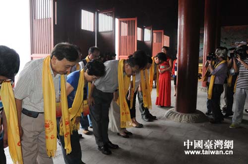 两岸嘉宾在中华三祖堂祭拜中华民族的三大文明始祖——黄帝、炎帝、蚩尤。(中国台湾网 高斯斯 摄)