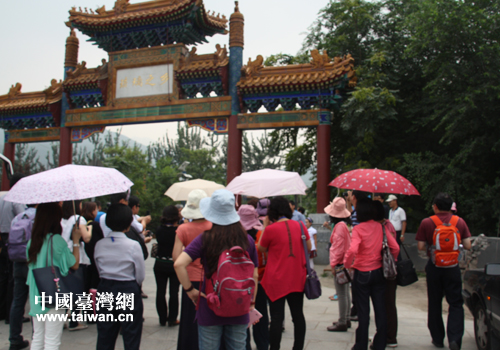 中国台湾网7月15日北京消息 先有潭柘寺,后有北京城。7月14日上午,来自台湾新北市和高雄市的30余名中小学校长、学者、教育界同仁,来到北京门头沟区潭柘寺中学参访,潭柘寺中学校长吕让华、副校长杨双武等陪同。