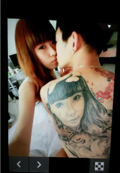 台湾男子把女友脸庞刺在背上。(图片来自台媒)