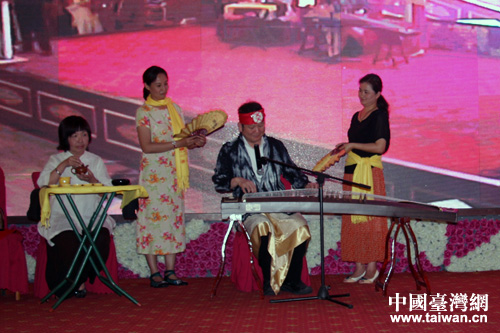 联欢会上,第五车演出“疯狂音乐剧:涿鹿大战“剧中炎帝弹得一手好古筝(中国台湾网 芜同 摄)