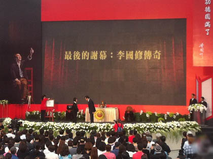 “最后的谢幕:李国修传奇”由曾国城担任主持人,追思会一开始先由马英九颁发褒扬令,之后放映李国修传奇影片,而李国修的太太王月、女儿李慧(任几)、李思源也将上台致词,最后则是由歌手万芳带领屏风子弟兵及全体民众献唱《掌声响起》。(中国台湾网 何建峰)