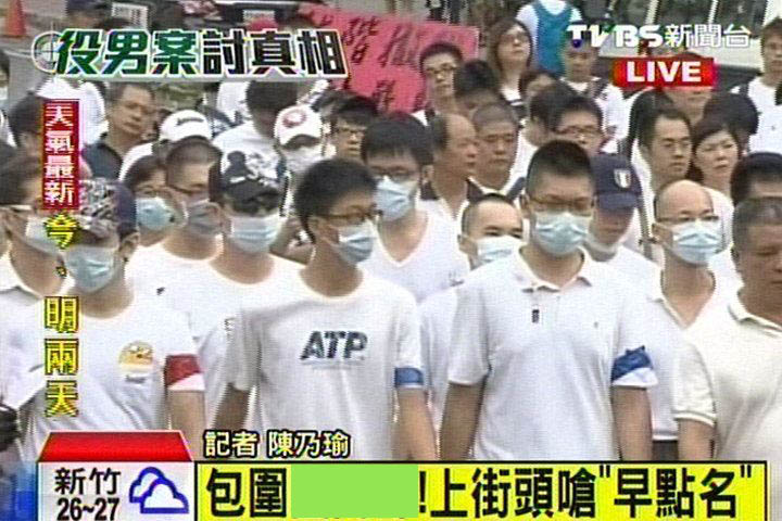 为洪仲丘事件讨公道,“公民1985行动联盟”今天走上街头。(视频截图来自台媒)