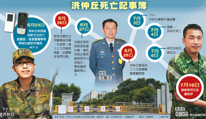 台湾被虐死士兵洪仲丘死亡记事簿。图片来源:台湾《联合报》