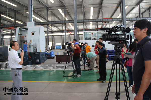 宁夏维尔铸造有限责任公司负责人在车间向两岸记者介绍情况。(中国台湾网 王文英 摄)