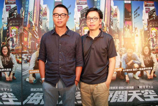 导演沈可尚(上图左)及侯季然(上图右)出席《中国合伙人》千人首映会。(图片来自台媒)