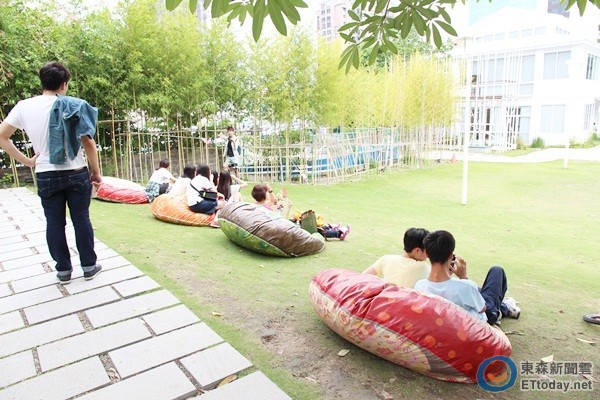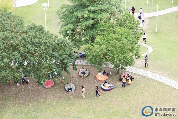 此外,这里也同样有与知名插画家57(吴骐)创作,长达16米的西瓜棒冰,和20个直径1米5水果懒骨头的2000余平米的“甜一点 拼果室”,将“懒骨头”搬至户外,在树下与朋友一同躺卧于此,体验乐活于台中草地的优闲感也不失为一种享受。西瓜棒冰的另一侧,也有网络上爆红的UP UP举牌小人,可供民众一同举牌。