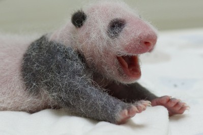 熊猫“圆仔”体重突破1公斤 俨然长成“大姑娘”(图片取自台湾“中央社”)