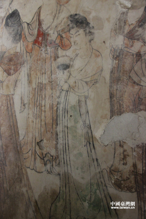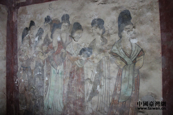 永泰公主墓内的宫女图壁画。(中国台湾网 王文英摄)