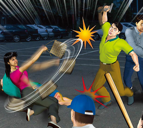 张男倒卧血泊后,黄男仍不罢手,还邀集一帮同伙棍棒伺候,这时,陈女突然趴伏在男友身前,为他奋力抵挡袭击,并大喊:“我跟你们拼了!”之后直接拿皮包挥打在场7名男子,虽然1名男子用枪托打伤陈女额头,她仍积极反抗,7男只好悻悻离开。