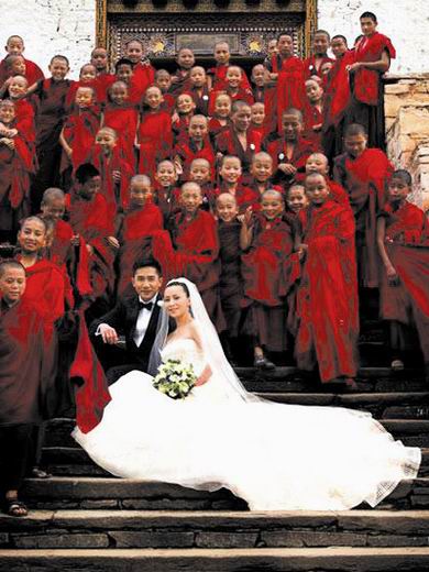 梁朝伟、刘嘉玲在不丹结婚。(图片来自台媒)