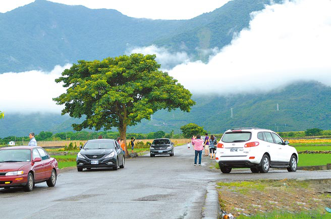 金城武拍摄广告的树涌进大批游客,人车多造成交通堵塞。(图片来自台媒)
