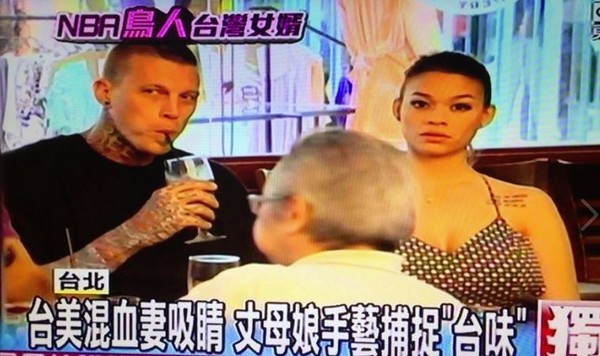 中国台湾网8月15日消息 NBA热火队球员“鸟人”安德森(Chris Andersen),于13日晚间闪电访台,被媒体直击带着妻子及丈母娘到台北信义区用餐,期间,他招手亲切向球迷问好,旁边的混血美女太太却意外成为聚光灯焦点。