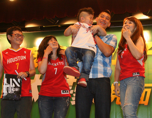 林书豪在见面会尾声亲切与球迷合影留念,并抱起一位3岁半的小球迷合影留念,这位小球迷可以算是林书豪的铁杆粉丝,现场记者问他叫什么名字,他都直接回答以“林书豪”作答。(中国台湾网 李帅)
