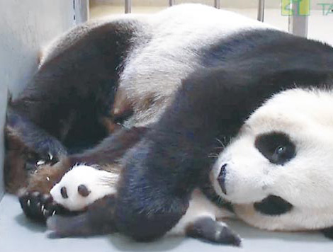 中国台湾网8月16日消息 据台湾《中国时报》报道,大陆赠台大熊猫“圆圆”所生熊猫宝宝“圆仔”即将张开眼睛,台北市立动物园希望她睁开眼最先见到的是妈妈“圆圆”,因此增加母女相处时间,昨晚园方首度尝试让“圆仔”依偎妈妈怀中睡觉,母女连续相处长达21小时,让保育员感到欣慰。