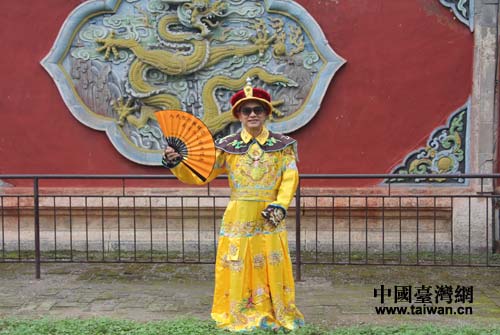 统促会代表穿清朝皇上服留念。(中国台湾网 吴晓寒 摄)